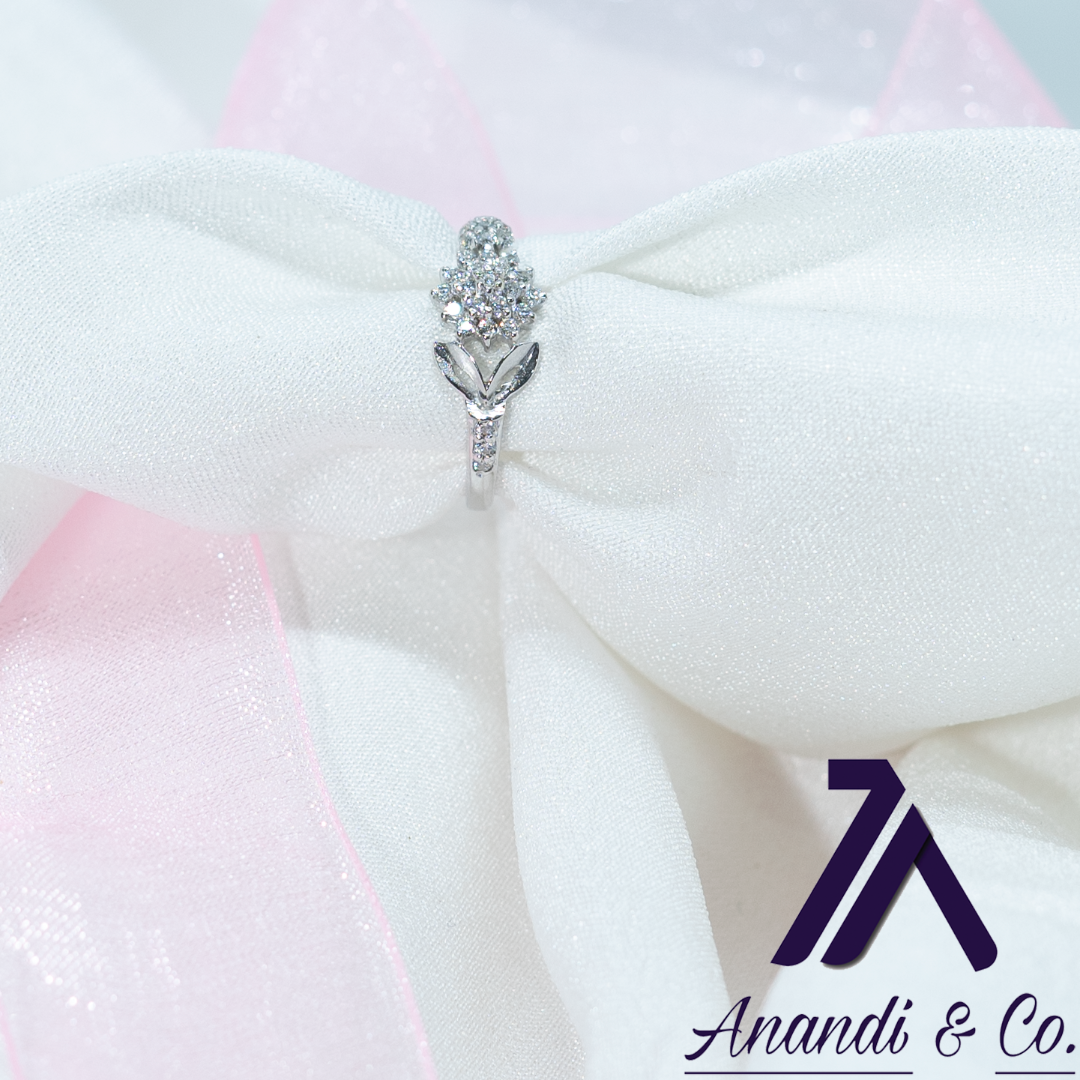 22 carat silver made. This ring is high polished and platted with rhodium for better shine, and used swarovski gems stone.