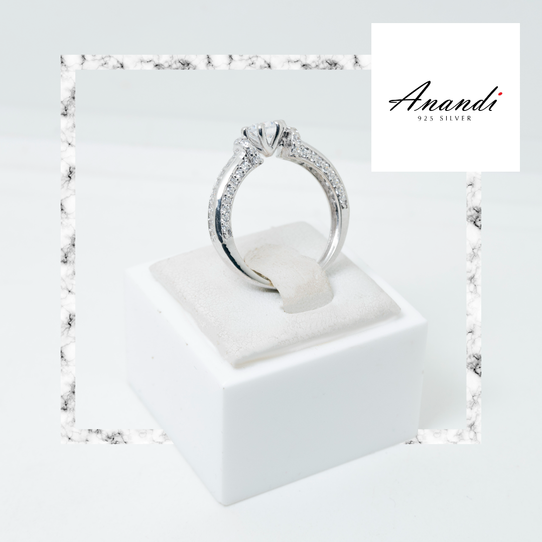 22 carat silver ring made with swarorski stone and rhodium platting.