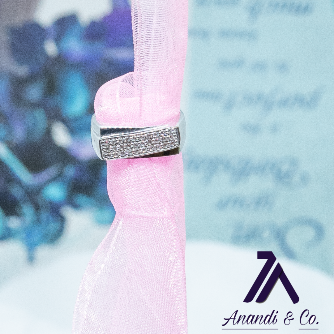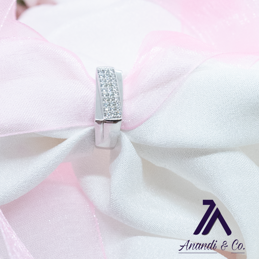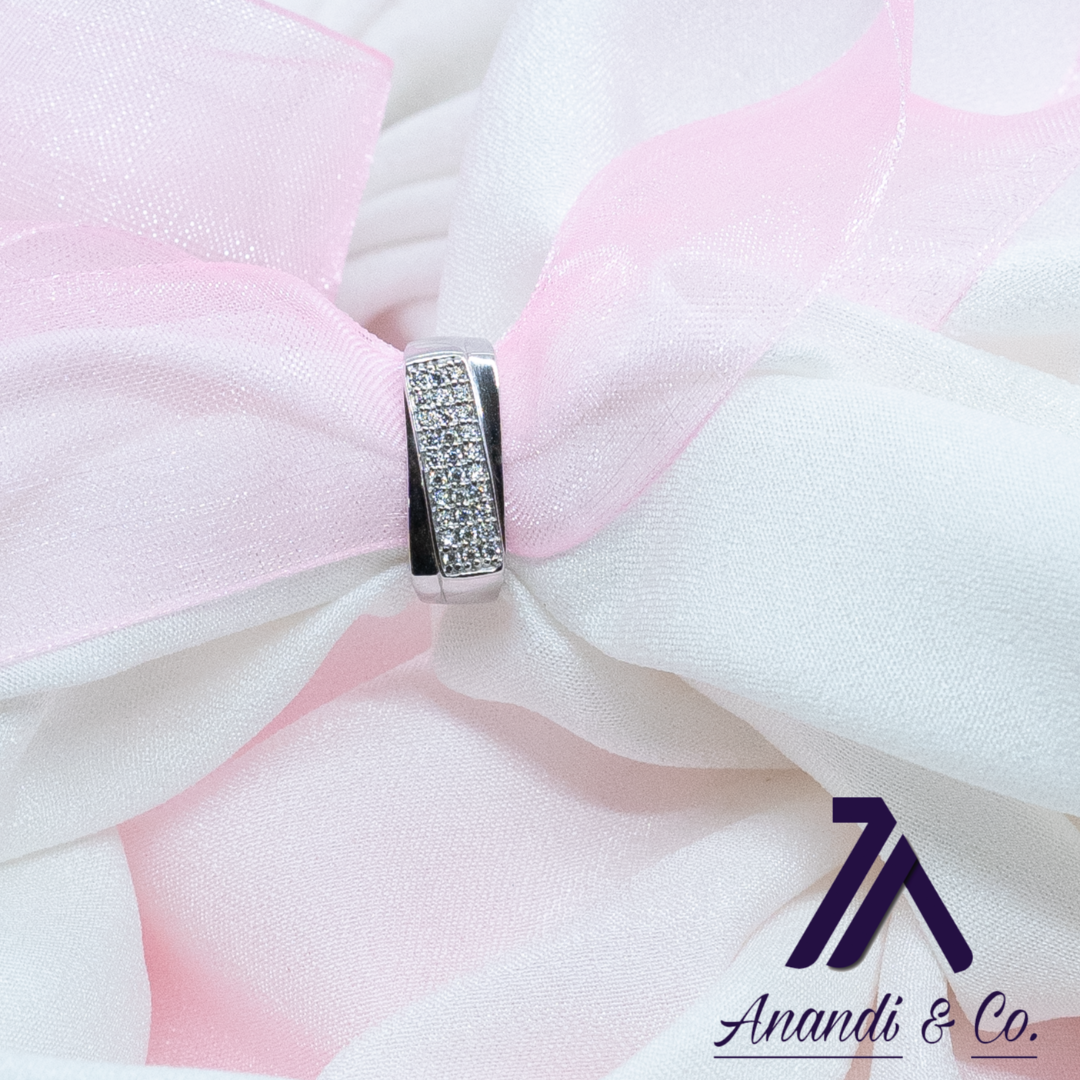 22 carat silver made with rhodium platting and swarovski cristals. Made by Anandi. Daily use ring.