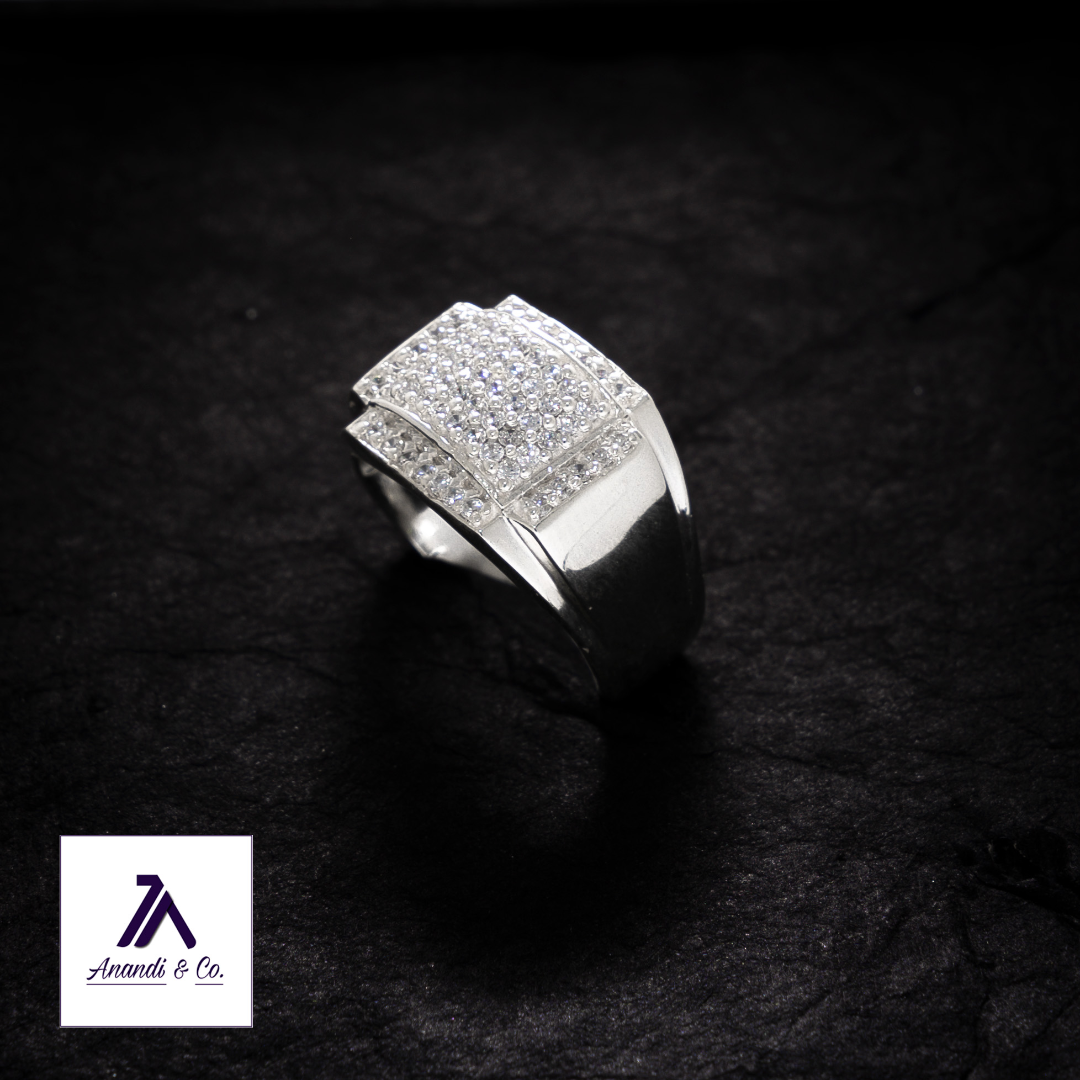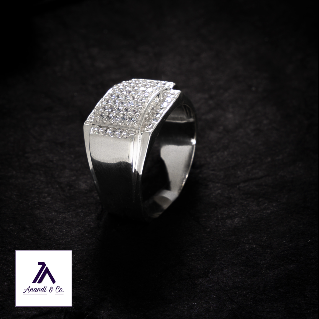 Male ring made by Anandi with precision. 22 karat silver ring with genuine swarovski crystals & European quality rhodium platted.