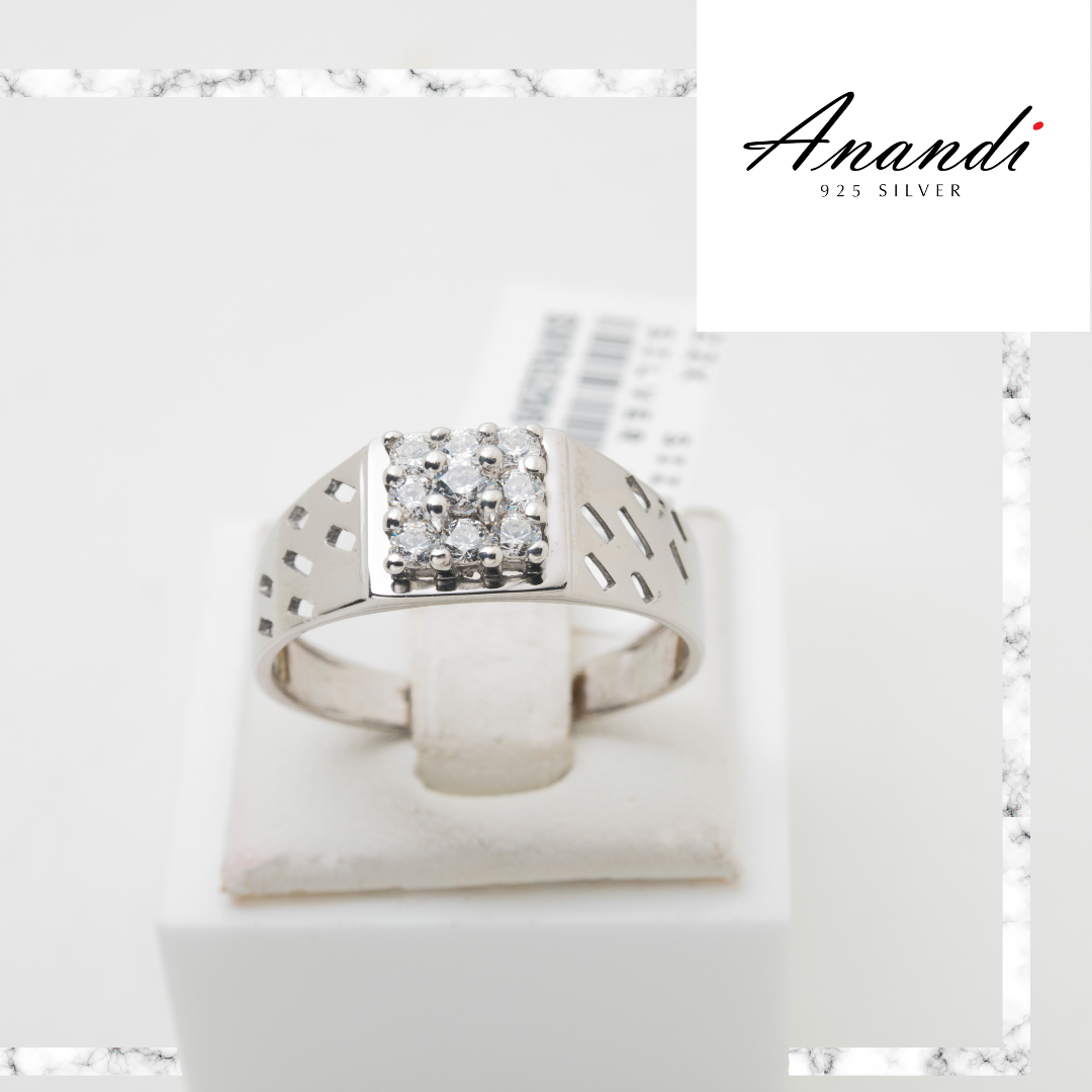 22 carat silver ring made by Anandi. This ring is high polished with rhodium platting and swarovski gemstones are used. Please use google to find your finger ring size or measure the size in nearest jewellery shop.