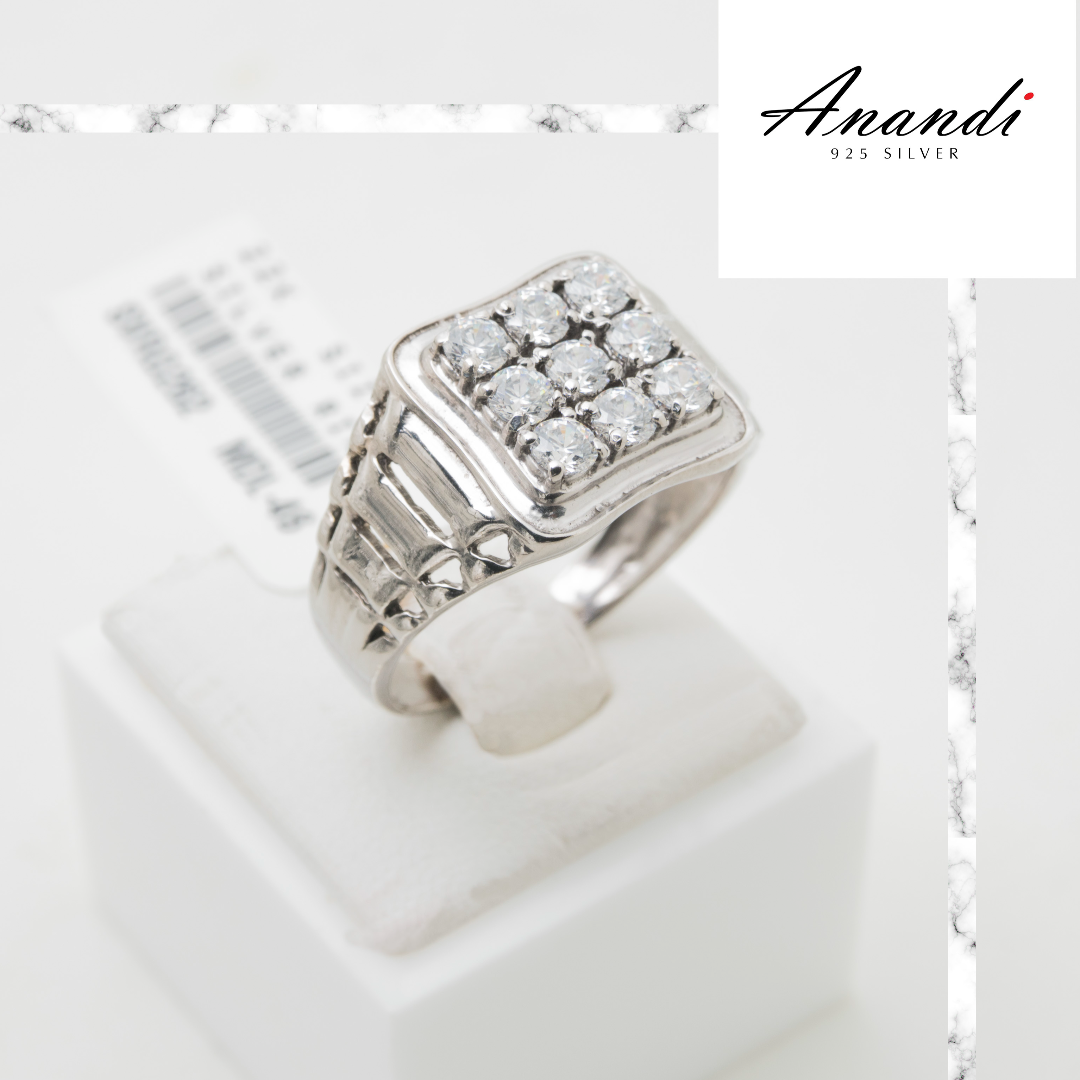 22 carat silver ring made by Anandi. This ring is high polished with rhodium platting and swarovski gemstones are used. Please use google to find your finger ring size or measure the size in nearest jewellery shop.