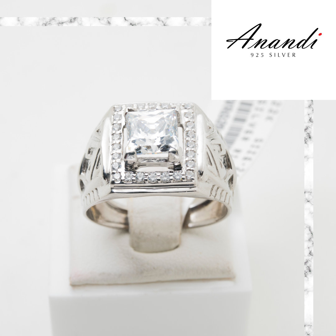 22 carat silver ring made by Anandi. This ring is high polished with rhodium platting and swarovski gemstones are used. Please use google to find your finger ring size or measure the size in nearest jewellery shop.