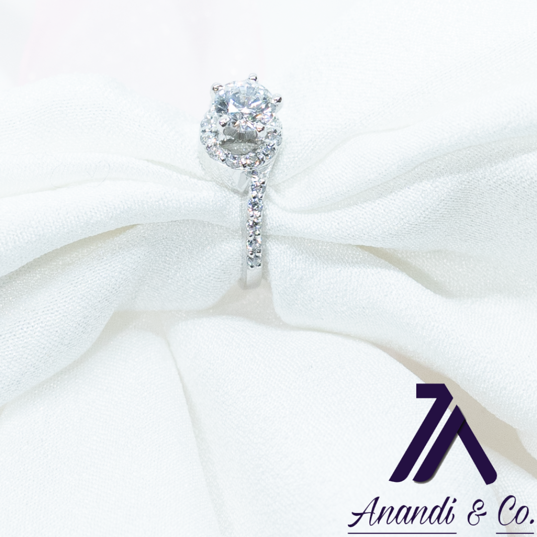 22 carat silver ring made by Anandi. This ring is high polished with rhodium platting and swarovski gemstones are used. Please use google to find your finger ring size or measure the size in nearest jewellery shop.